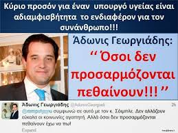 Το πρωί με πήραν τηλέφωνο από το γραφείο του Γεωργιάδη και μου είπαν πως έδωσαν το τηλέφωνο μου στους γονείς ενός νεαρού 31 ετών ο οποίος έχει μια πάθηση στο γαστεντερικό του σύστημα, σοβαρή και χρειάζεται επειγόντως ένα φάρμακο αξίας 2000 ευρώ. Ναι σωστά καταλάβατε έδωσαν το τηλέφωνο μου από το γραφείο του Γεωργιάδη ο οποίος για να μην ξεχνιόμαστε είναι ο Υπουργός Υγείας(;) στην χώρα μας. Παρεπιπτόντως είναι το δεύτερο περιστατικό σήμερα, που δίνουν δηλαδή το τηλέφωνο μου σε ανασφάλιστο ασθενή από το γραφείο του υπουργού.